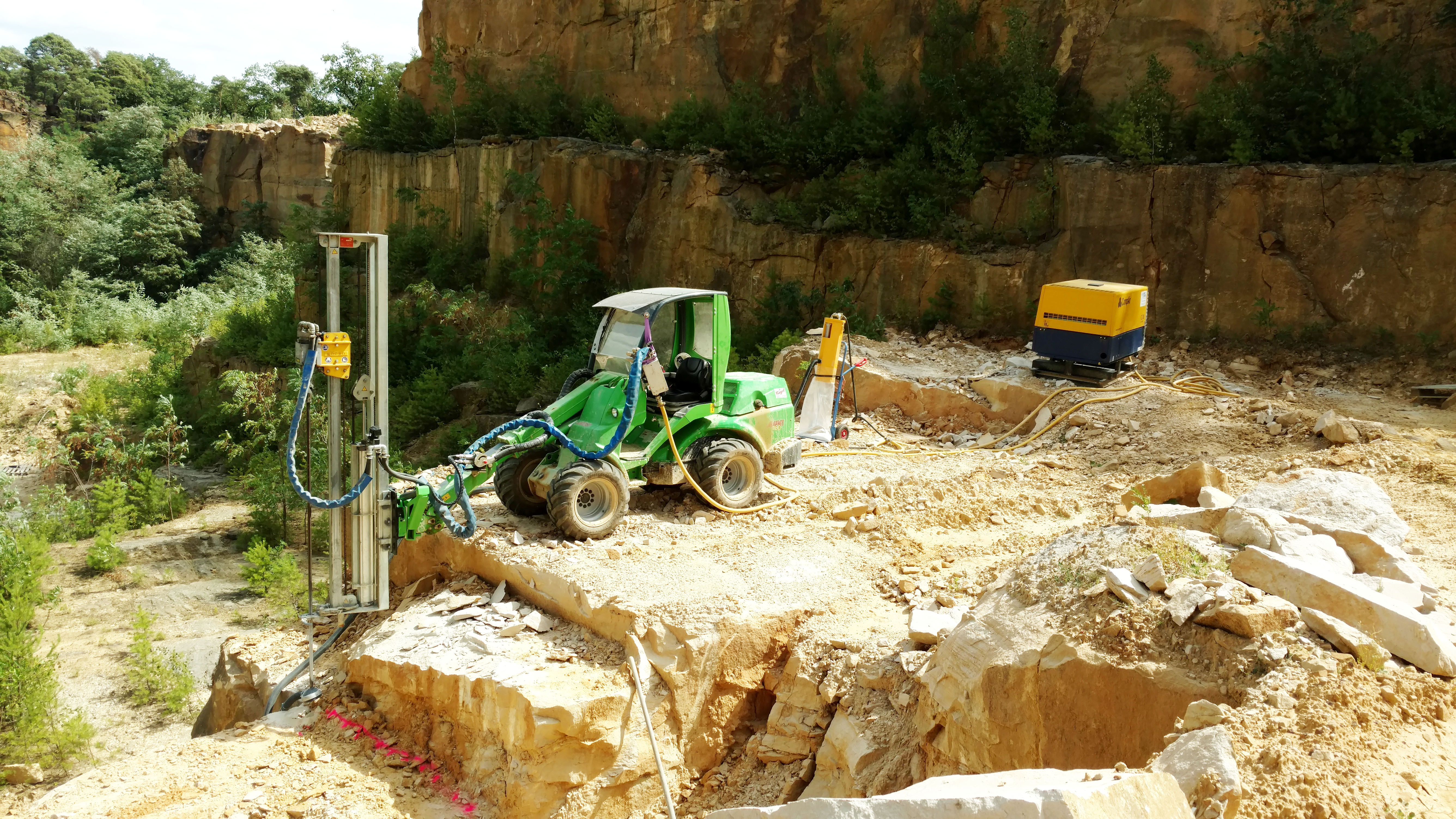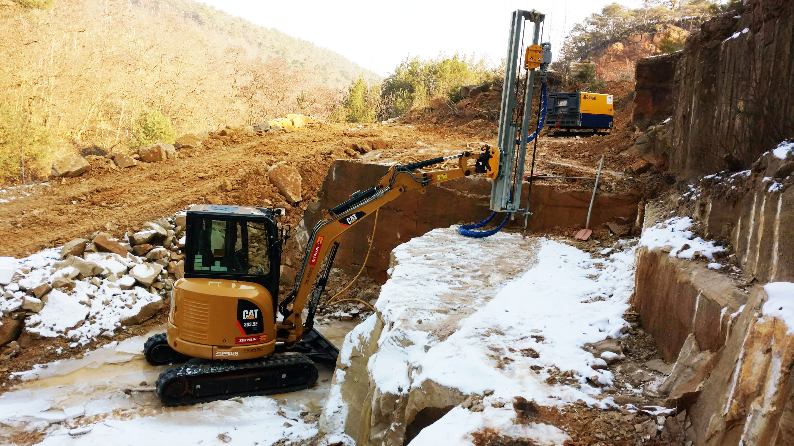 Serienbohrungen für Brückensanierungen, Hangsicherungen, Verkehrssicherung, Sprenglochbohrungen, Steinbrucharbeiten, Tunnelvortrieb, Gebirgtechnik und vieles mehr finden unsere pneumatischen Bohrlafetten ihren Einsatzzweck.